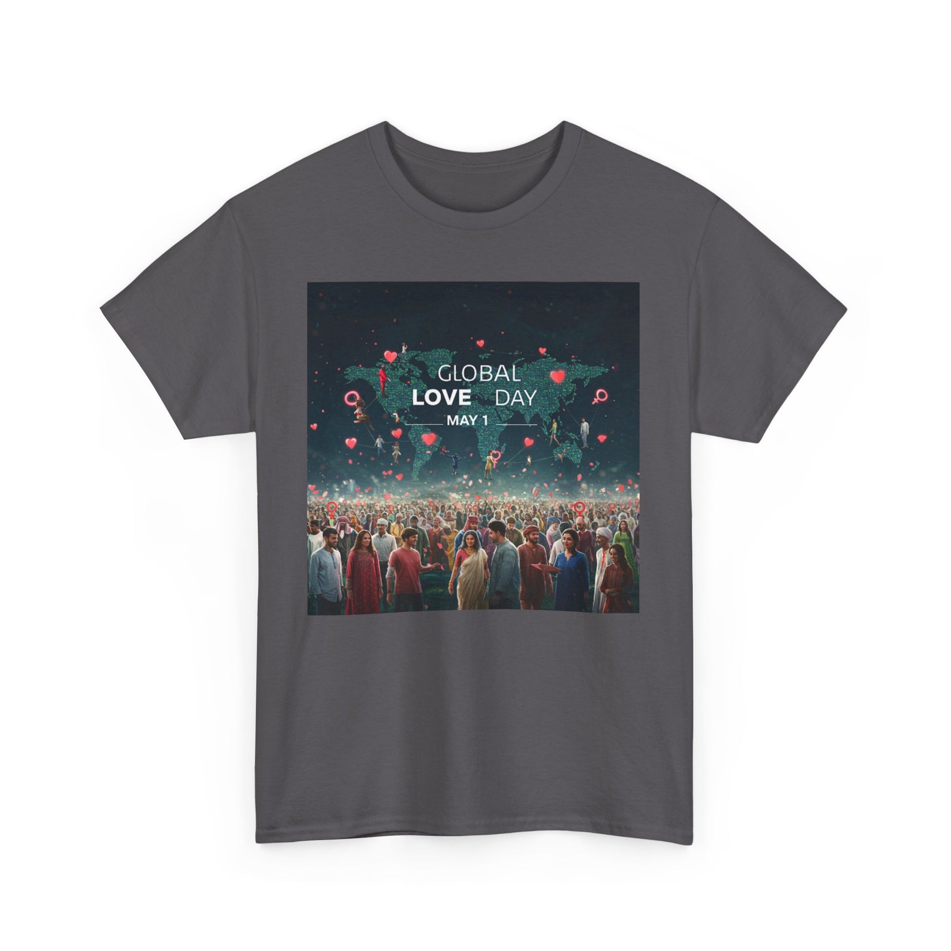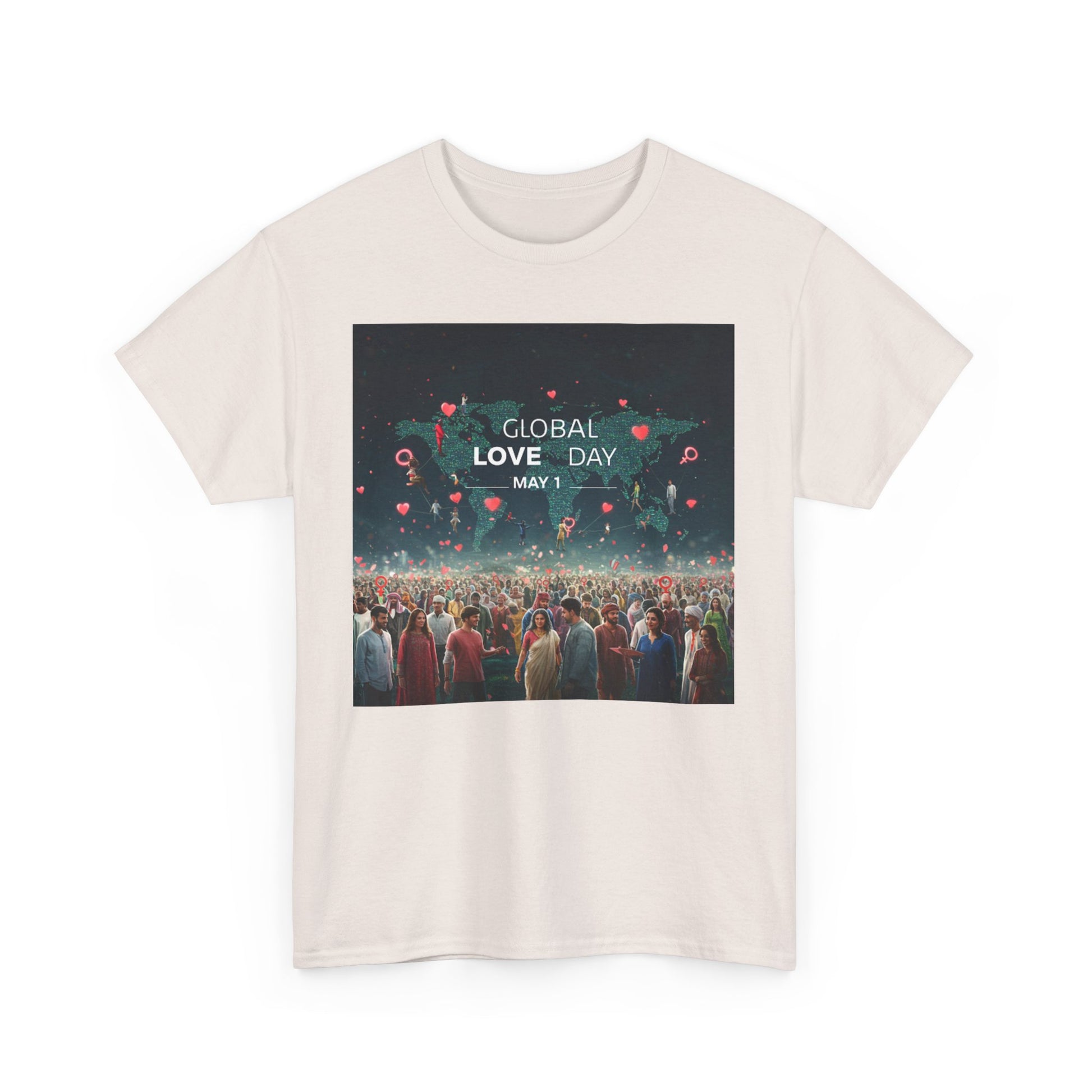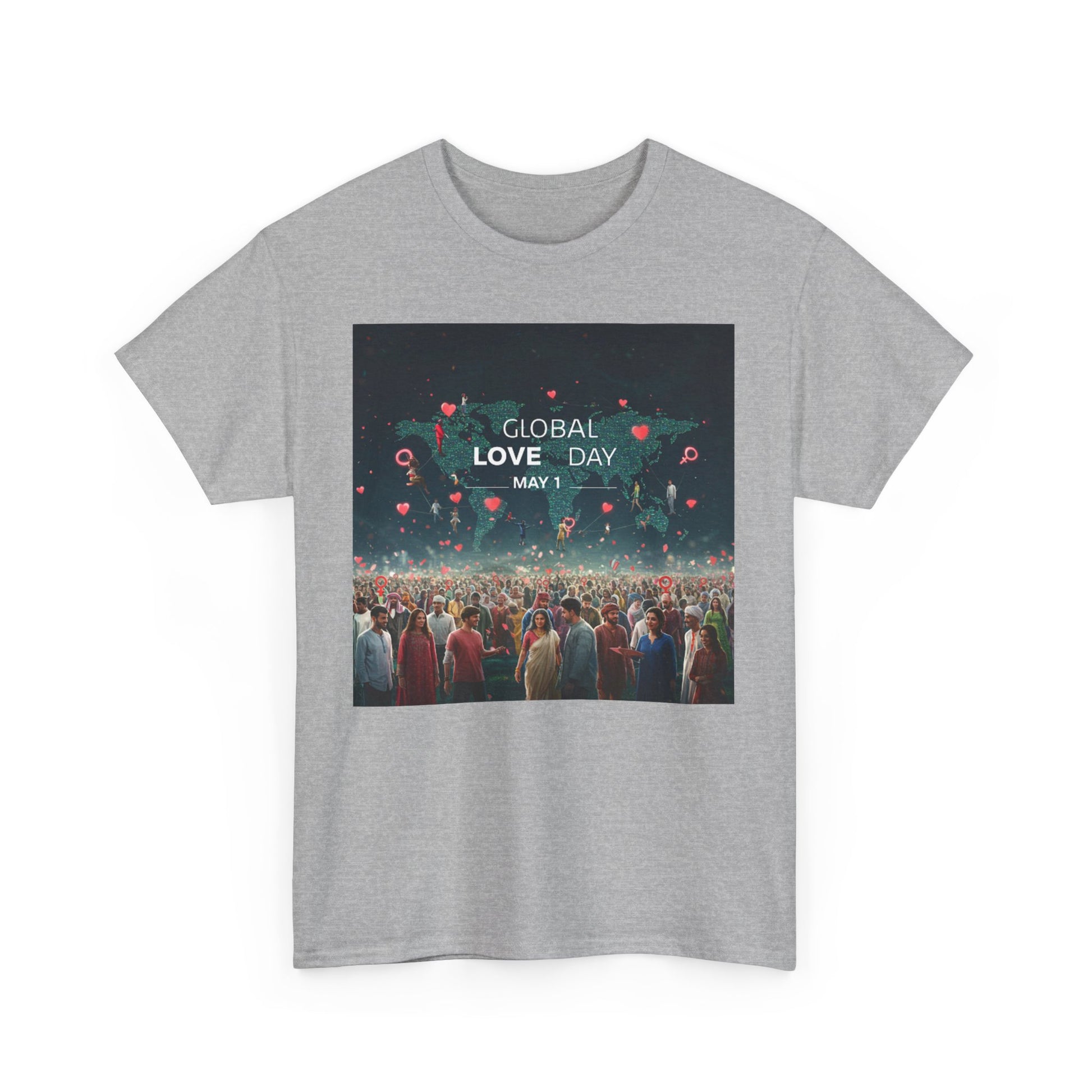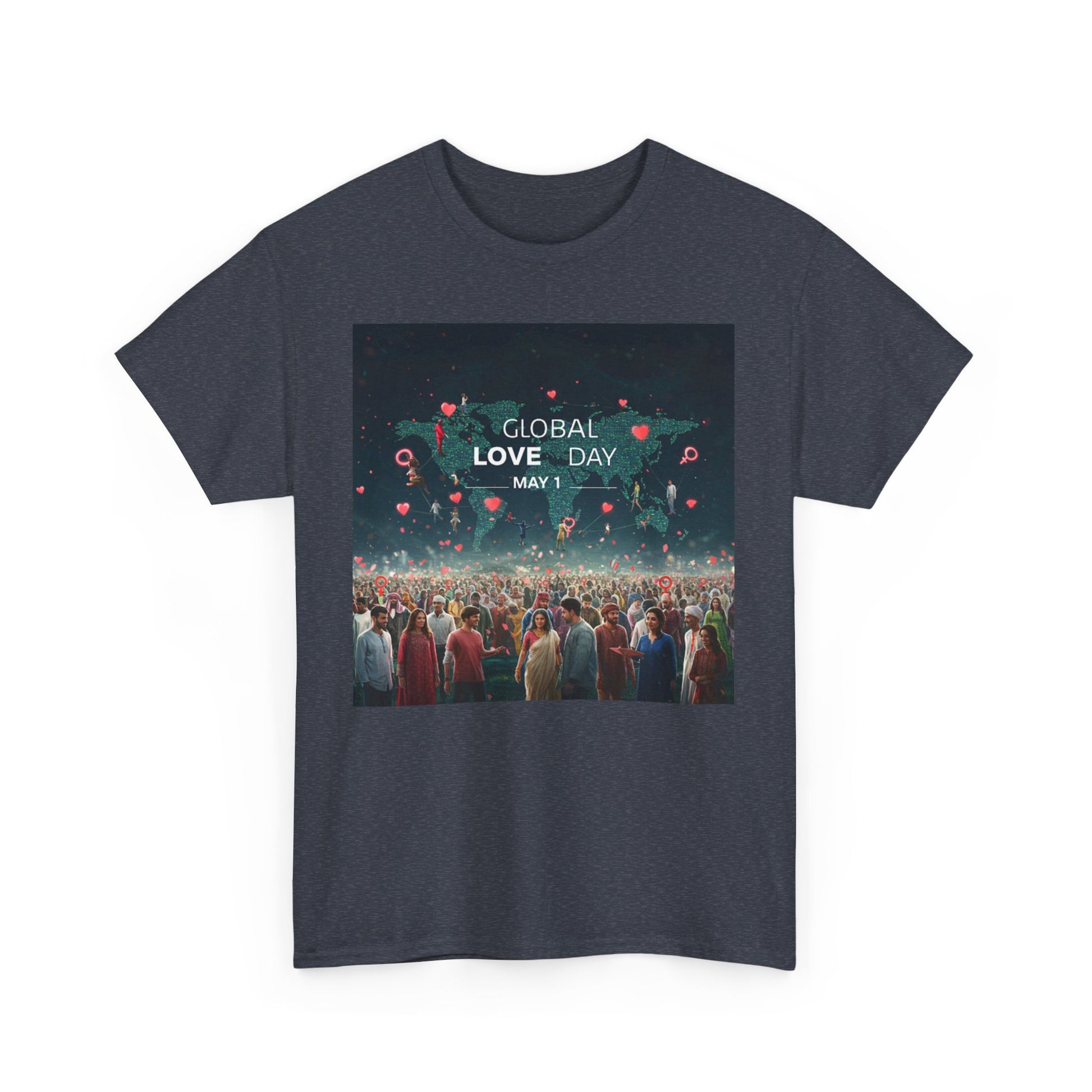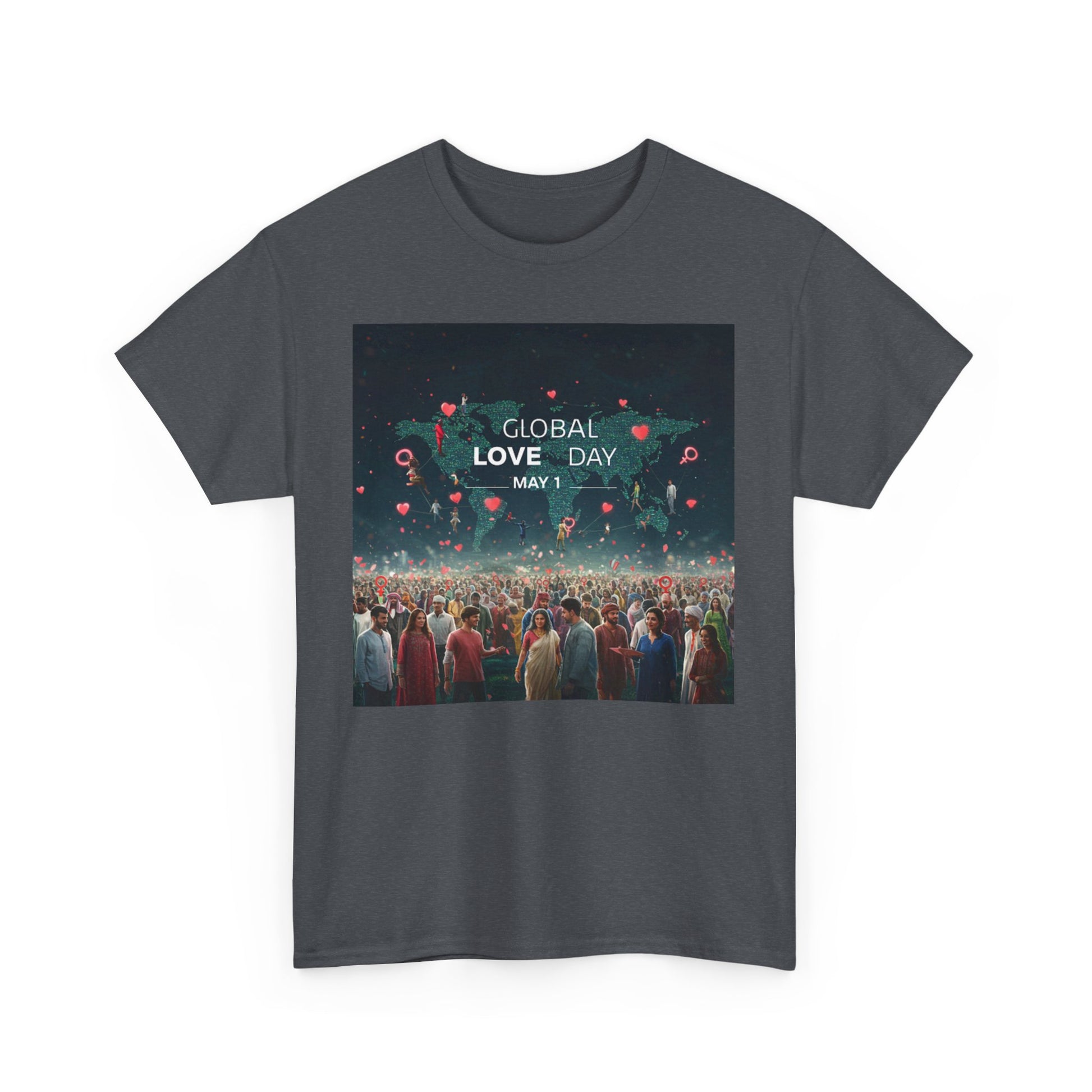 Introduce a touch of love and positivity into your wardrobe with this Unisex Heavy Cotton Tee. Featuring a striking design that celebrates Global Love Day on May 1st, this t-shirt radiates a warm, inclusive vibe that encourages connection and compassion. Perfect for casual outings, this tee is not just apparel; it's a statement piece that resonates with those who value love and unity. Its classic fit and soft fabric ensure comfort, making it suitable for social gatherings, casual Fridays, or simply lounging at home. Ideal for anyone passionate about spreading positivity, this tee makes a thoughtful gift for friends, family, or loved ones during the celebration of Global Love Day or any occasion where love is in the air. Wear it with pride and let your shirt do the talking!